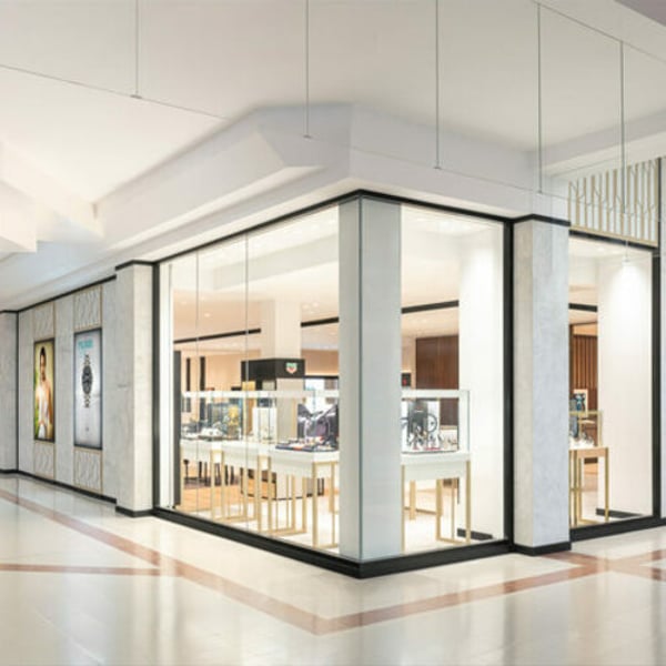 The upsize, in a key corner unit allowing for a full glass wrap-around façade, features a larger dedicated Rolex room, alongside branded areas from Omega, TAG Heuer, Tudor, Longines, and Tissot. It also benefits from the addition of Rolex Certified Pre-Owned and Longines branded areas, for an even more extensive range of watches.