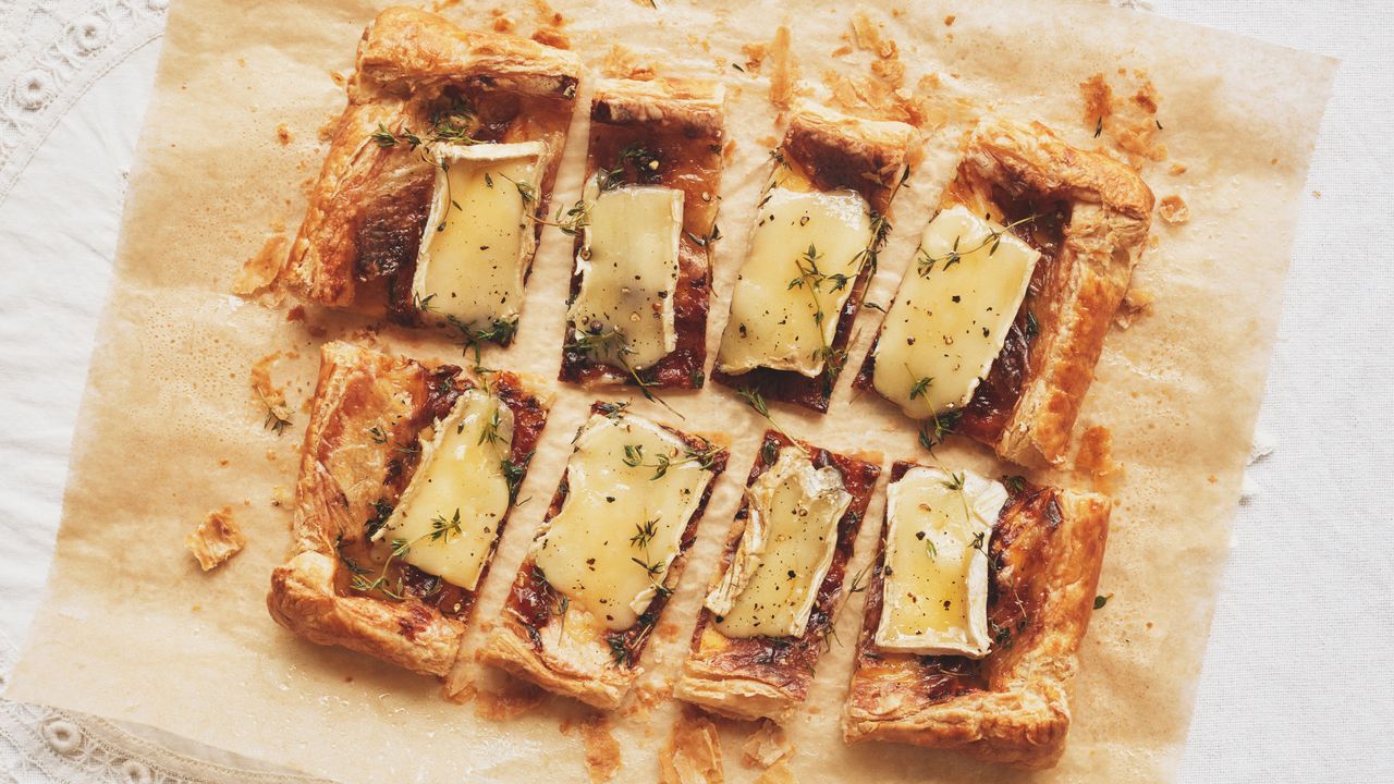 Inspired by the baked Brie my mom used to set out at her holiday gatherings, it requires just five ingredients and five minutes before it hits the oven. My mom went big with her baked brie, adorning the pastry-wrapped round of cheese with on-theme holiday shapes she’d cut out of the dough scraps with cookie cutters. My move is more lo-fi: Imagine a slick of sweet jam (you can use whatever you’ve got, but I’m particularly fond of fig or apricot), a layer of thinly sliced Brie, a few cracks of black pepper, and a couple sprigs of woodsy thyme tucked here and there, all on that same sheet of store-bought puff.