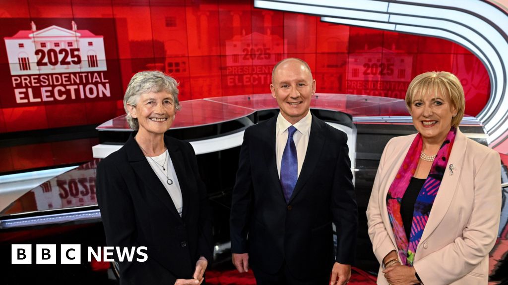 Ramsey Cardy/Sportsfile Catherine Connolly, Jim Gavin and Heather Humphreys stand in a TV studio smiling at the camera. Behind them is a large red screen displaying a 2025 Presidential Election logo. Catherine Connolly on the left is an older woman, with short grey hair, a black suit jacket and a white shirt. In the middle is Jim Gavin, who is a bald man and is wearing a black suit jacket, a white collared shirt and a blue tie. On the right is Heather Humphreys, who is an older woman with short blonde hair. She is wearing a ligh coloured suit jacket, a colourful scarf and a black top.Ramsey Cardy/Sportsfile