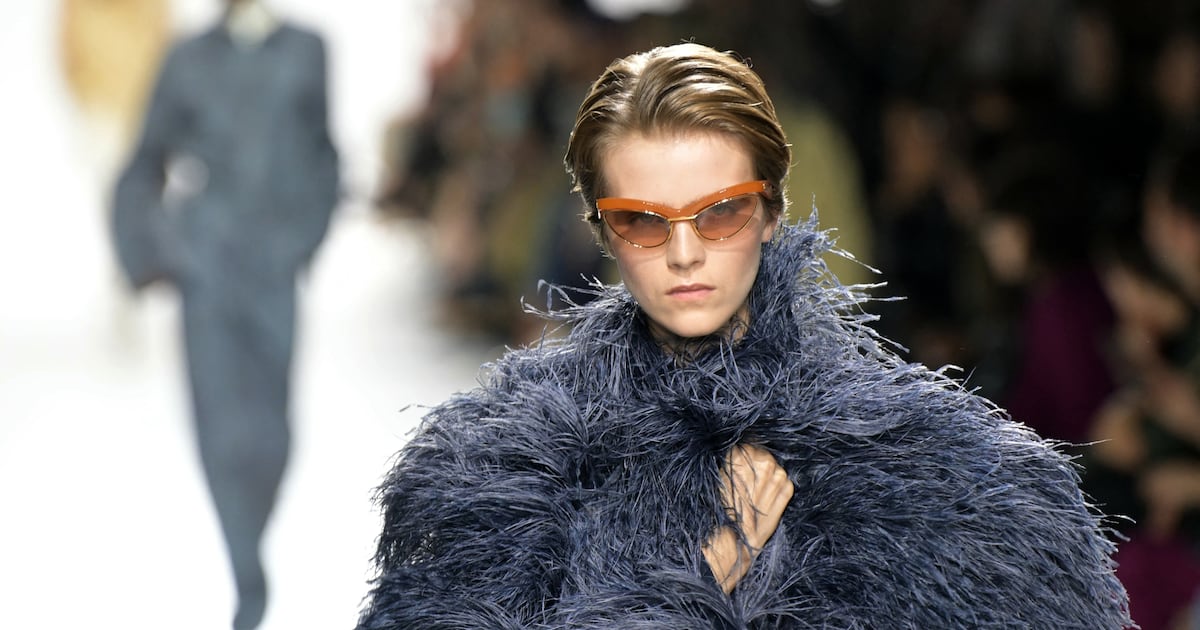 Of this season’s crop of creative directors staging debuts, Trotter is the only woman, and it is evident in the way her work relates to the body and movement. There is always a consideration of the reality of wearing clothes. On top of this there is a sentimentality that is entirely her own, and quite charming. It was evident in the fluttering of marabou and fringes, in the interplay of protection and exposure, in the fluffy movement of jumpers and skirts that looked very opulent, in a futuristic way.