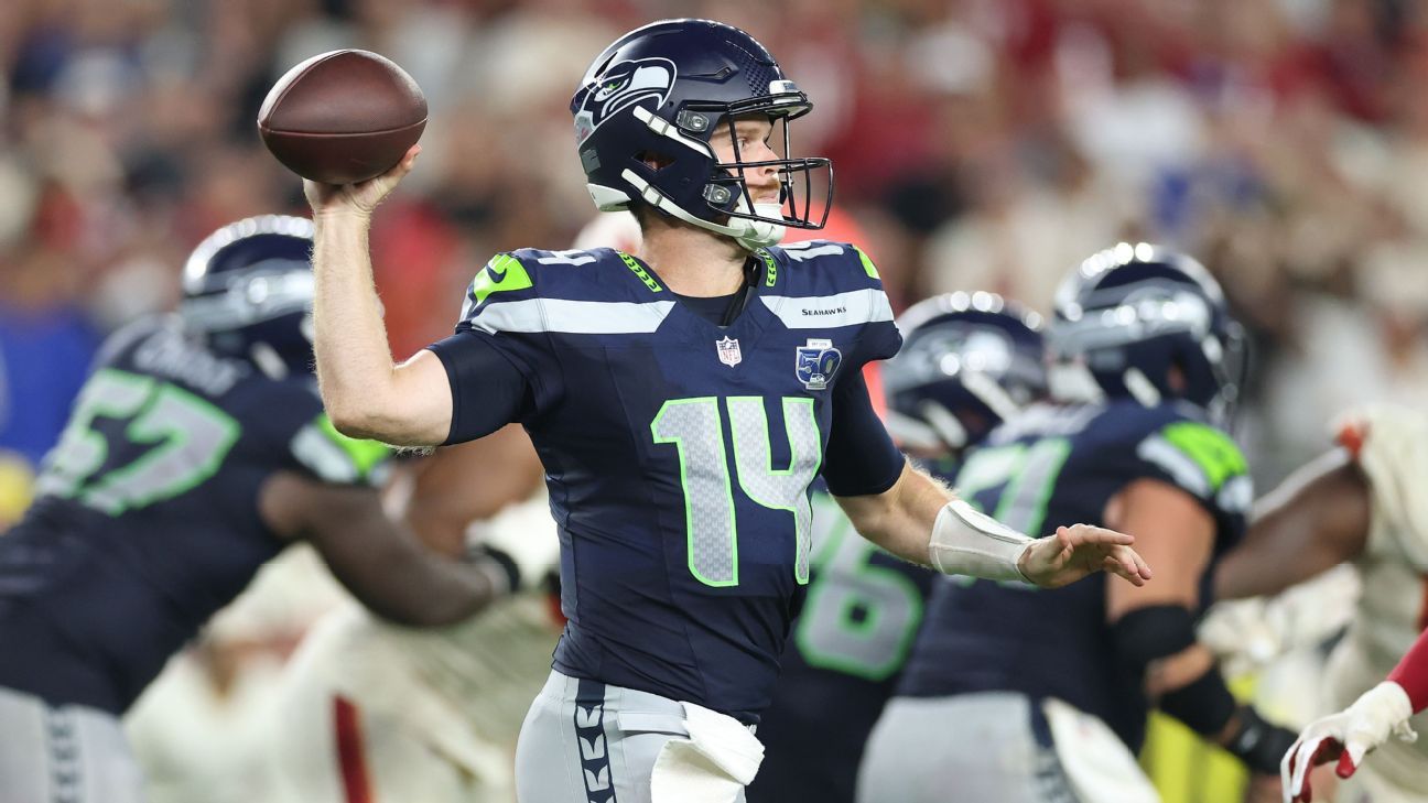Facing a second-and-10 from their own 40 with 23 seconds left, Sam Darnold hit receiver Jaxon Smith-Njigba down the left sideline for a 22-yard gain, setting up Jason Myers’ game-winning field goal from 52 yards out as time expired two plays later.