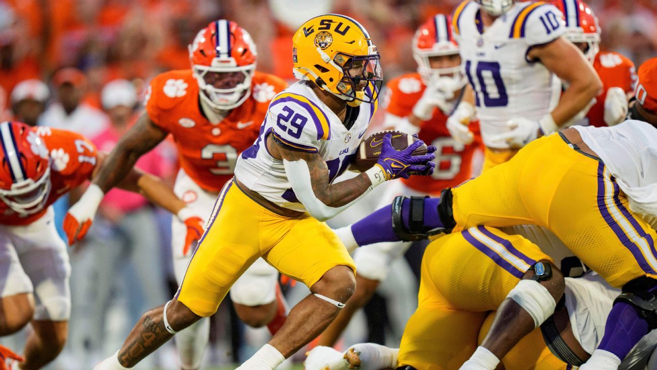 LSU leading rusher Caden Durham is doubtful for Saturday night’s game at Ole Miss because of an ankle injury, sources told ESPN.